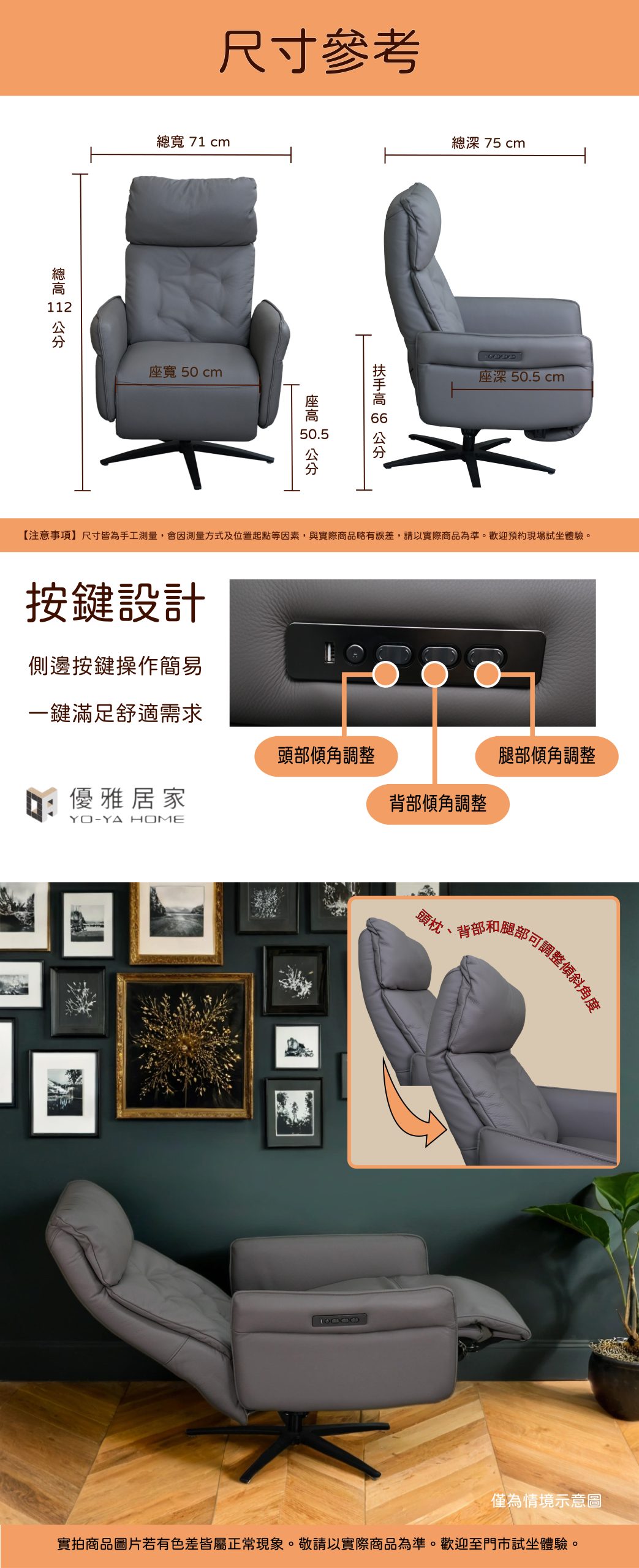 灰色全牛皮電動主人椅 Gray machine-operated chair 首頁/電動椅/灰色全牛皮電動主人椅 Gray machine-operated chair 8% OFF NT$32,500 原始價格:NT$32,500。NT$30,000目前價格:NT$30,000。 「優雅特色牛皮電動主人椅,︀讓您盡情享受愜意時光」 商品特色: 電動無段控制背部及腿部,︀操作簡單順暢 椅面拉點設計,︀精緻車線,︀居家質感代表 椅面貼合身體曲線,︀坐躺舒適無憂 可旋轉,︀活動便利性高 全牛皮製商品,︀觸感柔順舒適 ⚡好評促銷中,︀錯過機會不再! 描述 評價 (0) 商品評價 目前沒有評價。 搶先評價 “灰色全牛皮電動主人椅 Gray machine-operated chair”取消回覆發佈留言必須填寫的電子郵件地址不會公開。 必填欄位標示為 *您的評分 * 評分… 完美 很好 一般 不錯 很差 名稱 *電子郵件 *您的評價 * 在瀏覽器中儲存顯示名稱、電子郵件地址及個人網站網址,以供下次發佈留言時使用。 送出 相關商品 23% OFF 電動按摩躺椅 NT$32,500 原始價格:NT$32,500。NT$25,000目前價格:NT$25,000。 8% OFF 山吹色全牛皮電動主人椅 Yamabukiiro machine-operated chair NT$32,500 原始價格:NT$32,500。NT$30,000目前價格:NT$30,000。 大卡爾多功能升降茶几 NT$13,000
