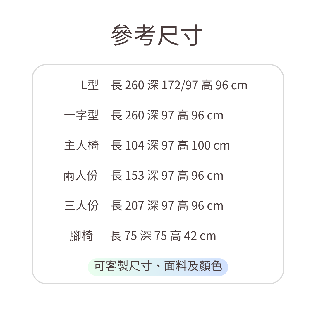 【商品特色】 1️⃣ 高背設計 × 舒適包覆後背填充柔軟絲棉,高背頭枕順貼頸部曲線,提供完整支撐與包覆感,提升長時間乘坐的放鬆體驗。 2️⃣ 連結式彈簧 × 穩定承托內部採用連結式彈簧支撐系統,結合泡棉與絲棉層,打造兼具彈性與穩定的坐感結構,耐用不易變形。 3️⃣ 機能腳椅 × 客製化選項搭配可掀式腳椅,結合實用收納空間。亦可依需求客製尺寸、配色、材質與配置組合,打造專屬居家風格。 商品評價 目前沒有評價。 搶先評價 “藍山 Blue Mountains”取消回覆發佈留言必須填寫的電子郵件地址不會公開。 必填欄位標示為 *您的評分 * 評分… 完美 很好 一般 不錯 很差 名稱 *電子郵件 *您的評價 * 在瀏覽器中儲存顯示名稱、電子郵件地址及個人網站網址,以供下次發佈留言時使用。 送出